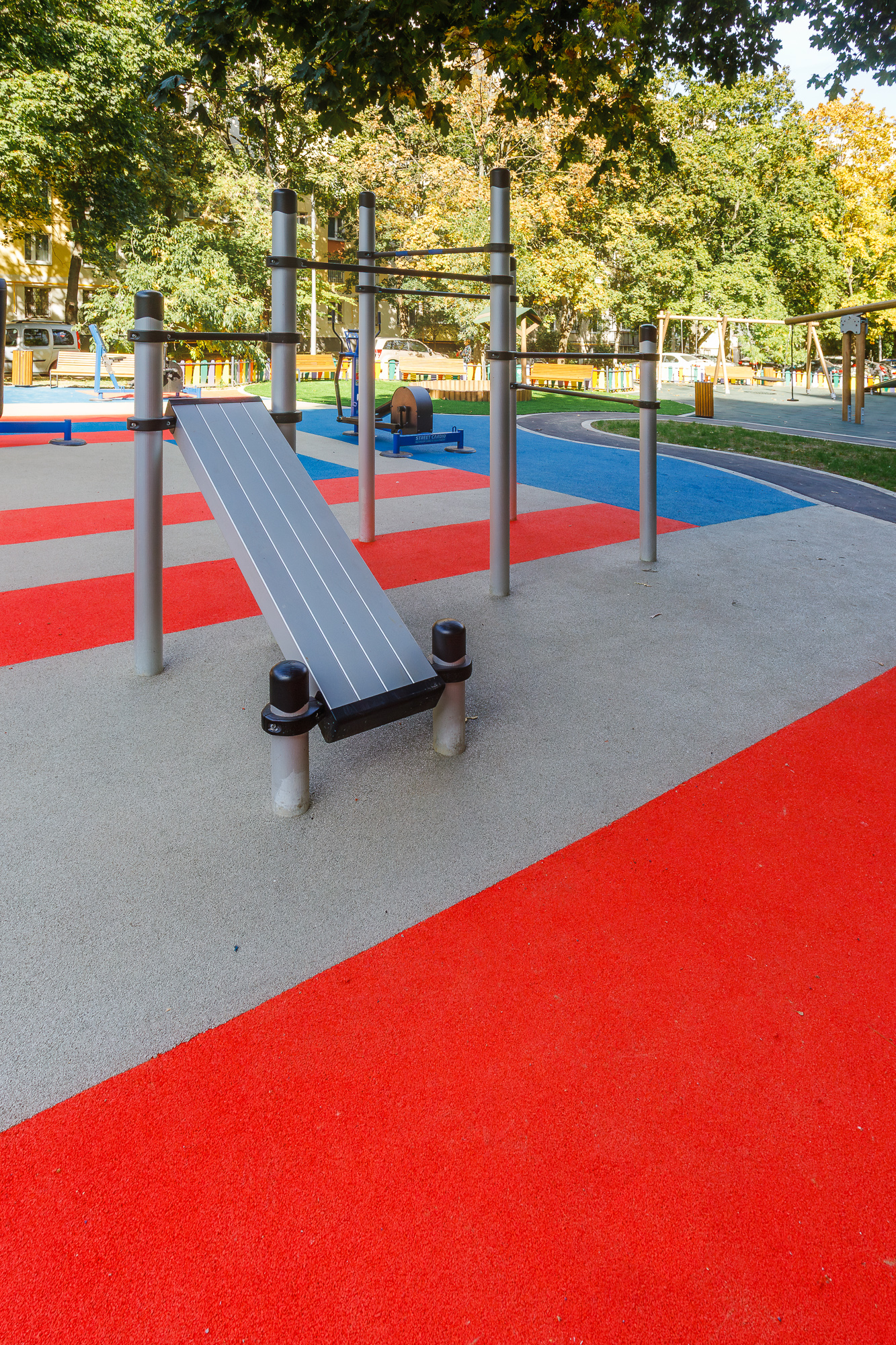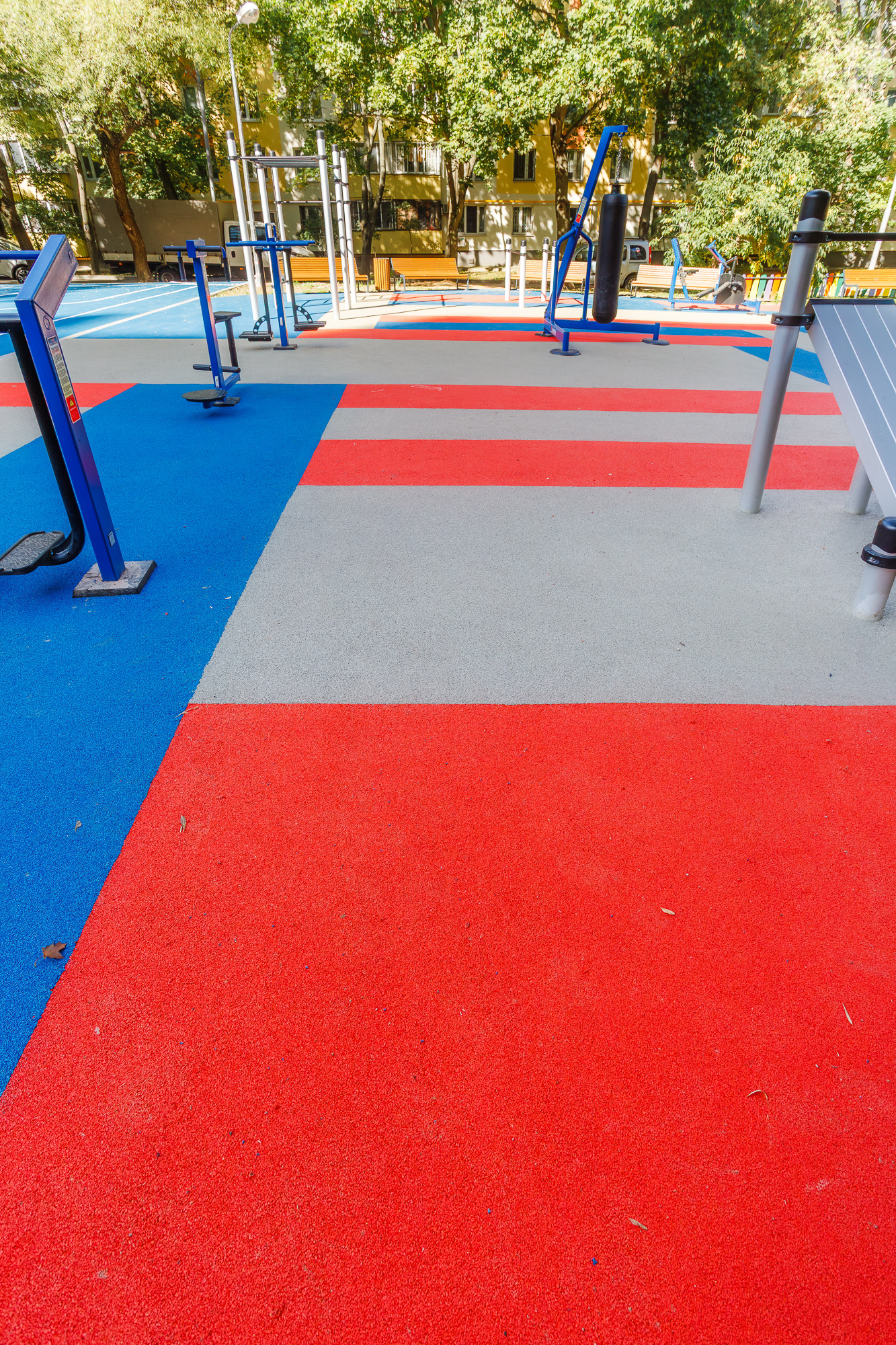Сфера применения красного гранулята:Укладка материала на рабочей поверхности начинается с подготовки основания. Если нагрузка на покрытие будет небольшая, то достаточно подушки из щебня. Насыпной материал равномерно распределяют, утрамбовывают, чтобы смесь из полимерного связующего и гранулята легла ровно. Важно не оставлять перепадов по высоте. После компоненты искусственного покрытия смешивают, наносят на рабочее основание слоем в 15-40 мм. Толщину покрытия определяют индивидуально, в зависимости от предполагаемых нагрузок и глубины засыпки амортизирующей подушки.